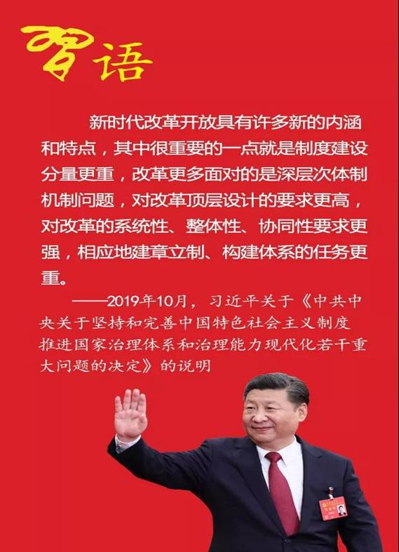——2019年10月,習(xí)近平關(guān)于《中共中央關(guān)于堅(jiān)持和完善中國(guó)特色社會(huì)主義制度推進(jìn)國(guó)家治理體系和治理能力現(xiàn)代化若干重大問(wèn)題的決定》的說(shuō)明